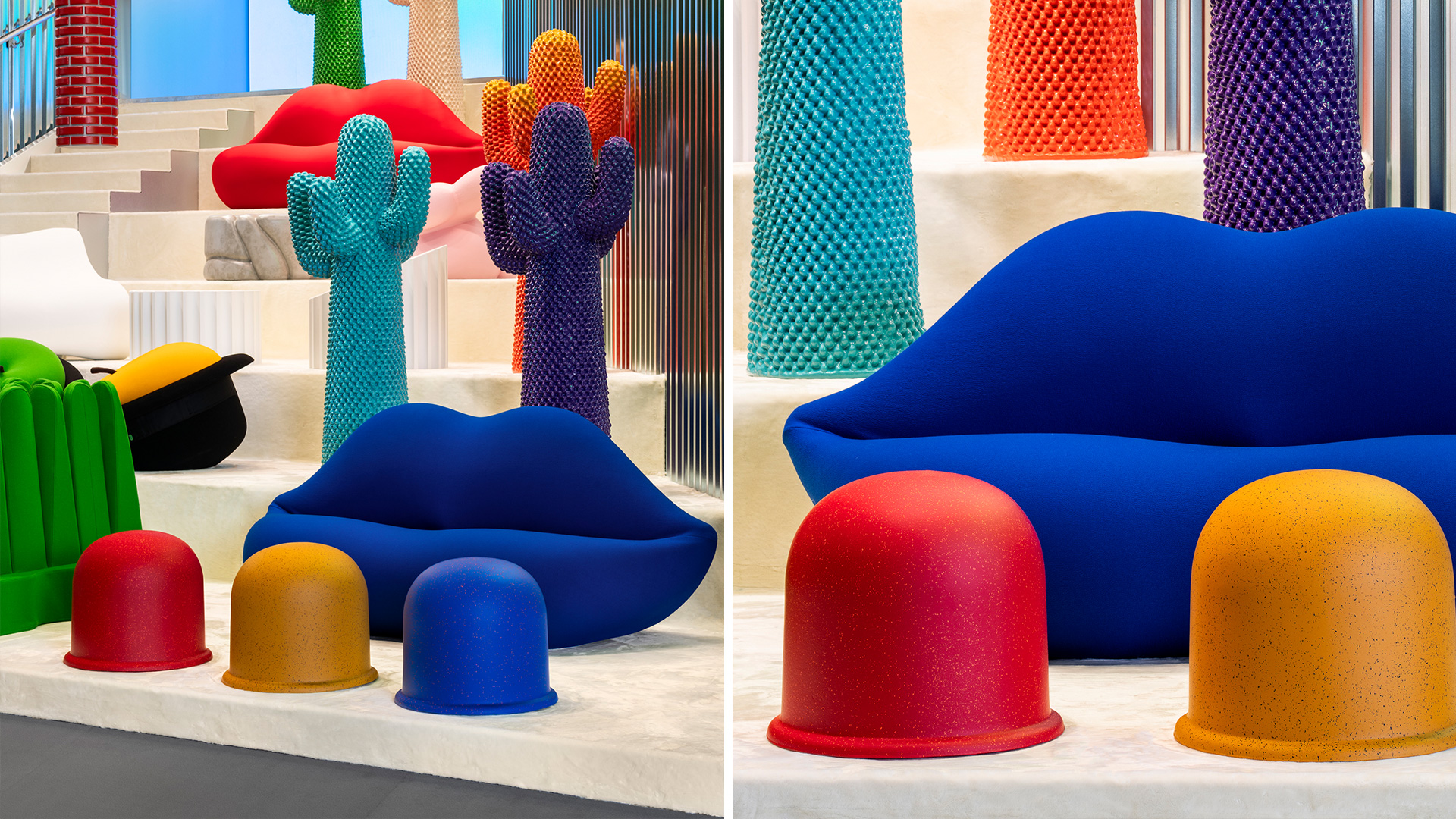 At first glance, the shape of the ironic object recalls that of typical Milanese concrete traffic bollards, but its soft core reveals a comfortable seat, which offers relaxing moments to those who encounter it.