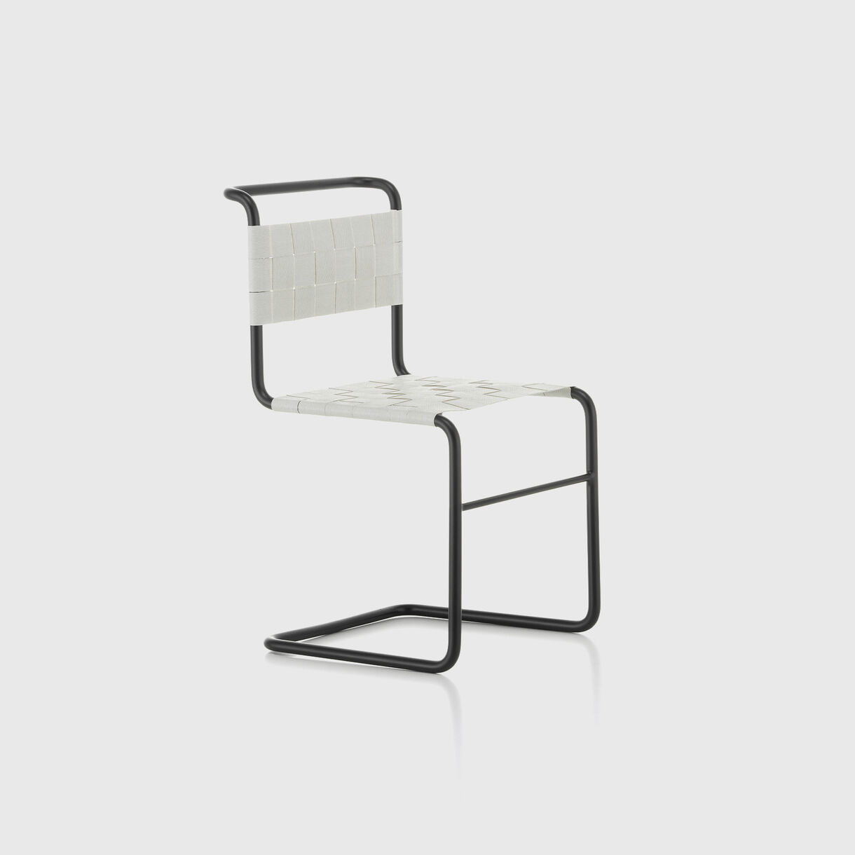 In 1927 Stam had his design produced by the L. & C. Arnold company, which also featured it in their sales program for a year. Unlike the prototype, the Arnold chair was made from a single piece of tubular steel with a diameter of just 20 mm, and with walls 2 mm thick. The bends in the tube had to be reinforced with solid iron rods, and thus lacked any springiness. The chair was painted black or grey, and, with its covering of rubber or coarse fabric, had a rather unassuming appearance.