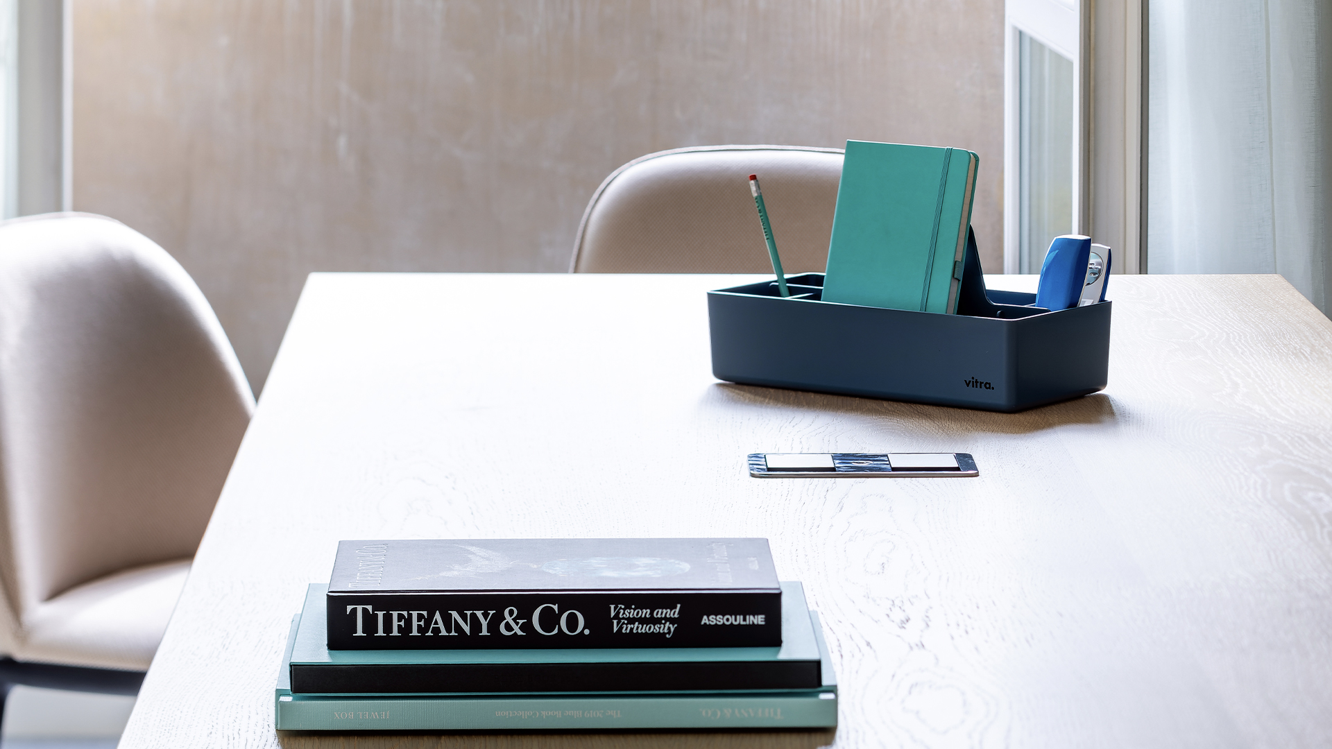 The high-quality recycling material stems from recycled household waste, particularly used packaging or post-industrial recycled ABS plastic. First developed in a dark grey hue, the natural shade of the processed recycling material, which therefore exhibits very slight irregularities in colour. Now available in a complementary range of colours that Vitra is known and loved for.