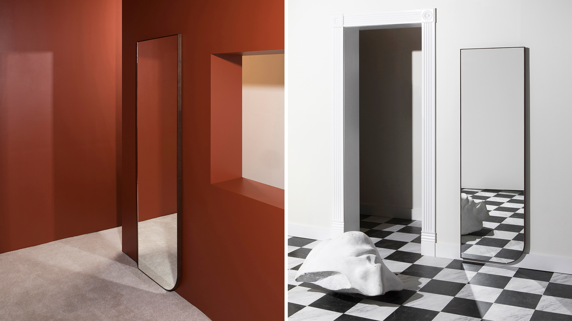 The Full Quarter Mirror can be customized concerning size, frame finish and glass tint.