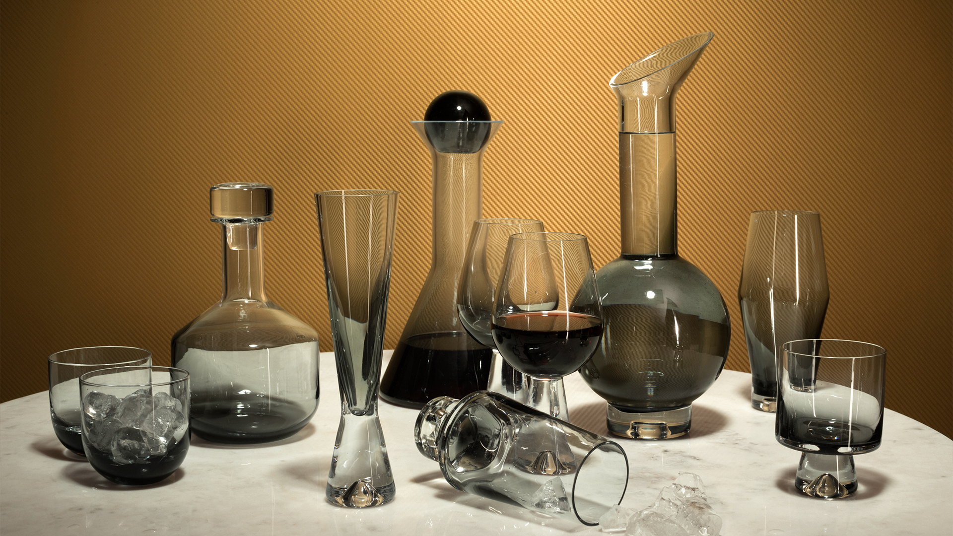 Tank takes its sculptural cue from the functional shapes and volumes of scientific glassware. Minimal yet decorative for a multiplicity of purposes of drinking, pouring, storing and displaying food and drink, the range forms bold building blocks of table-