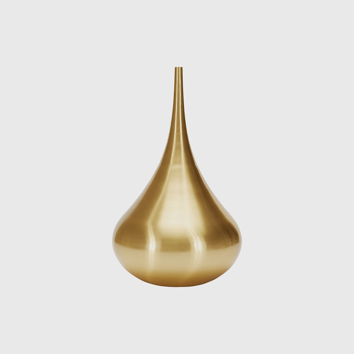 Perpetuating the skills of artisan craftsmen in Northern India, Beat’s origin is a re-purposed water vessel; hand-raised, welded, beaten and skimmed into functional silhouettes for the refraction of golden light.