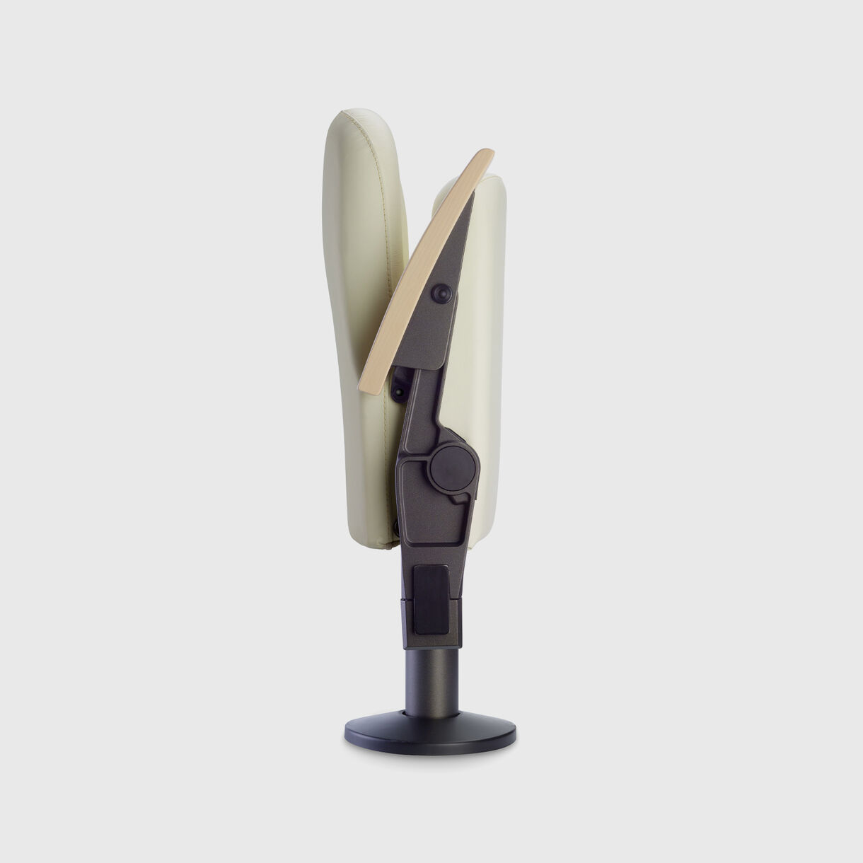 This beam-mounted seat has a folding system that consists of the seat turning and the backrest moving forward until both are lying completely flat against each other. Once the seat is folded, the depth is only 23cm, which enables maximum optimisation of space.