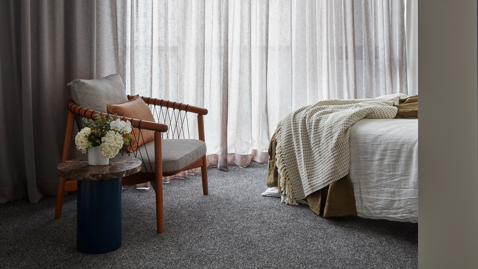 Parachute cords, a common industrial product, are an integral part of the chair’s design. Pulled down, the cords create a system of internal tension and supply the necessary back support, creating the feeling of being enclosed in a comforting, protective nest. The parachute cord is available in several colors, the frame in a selection of natural woods. Because of their simple, classic profiles, the Crosshatch Chair and Ottoman can work in a broad range of environments, from an executive office or a reception area to a penthouse or suburban living room.