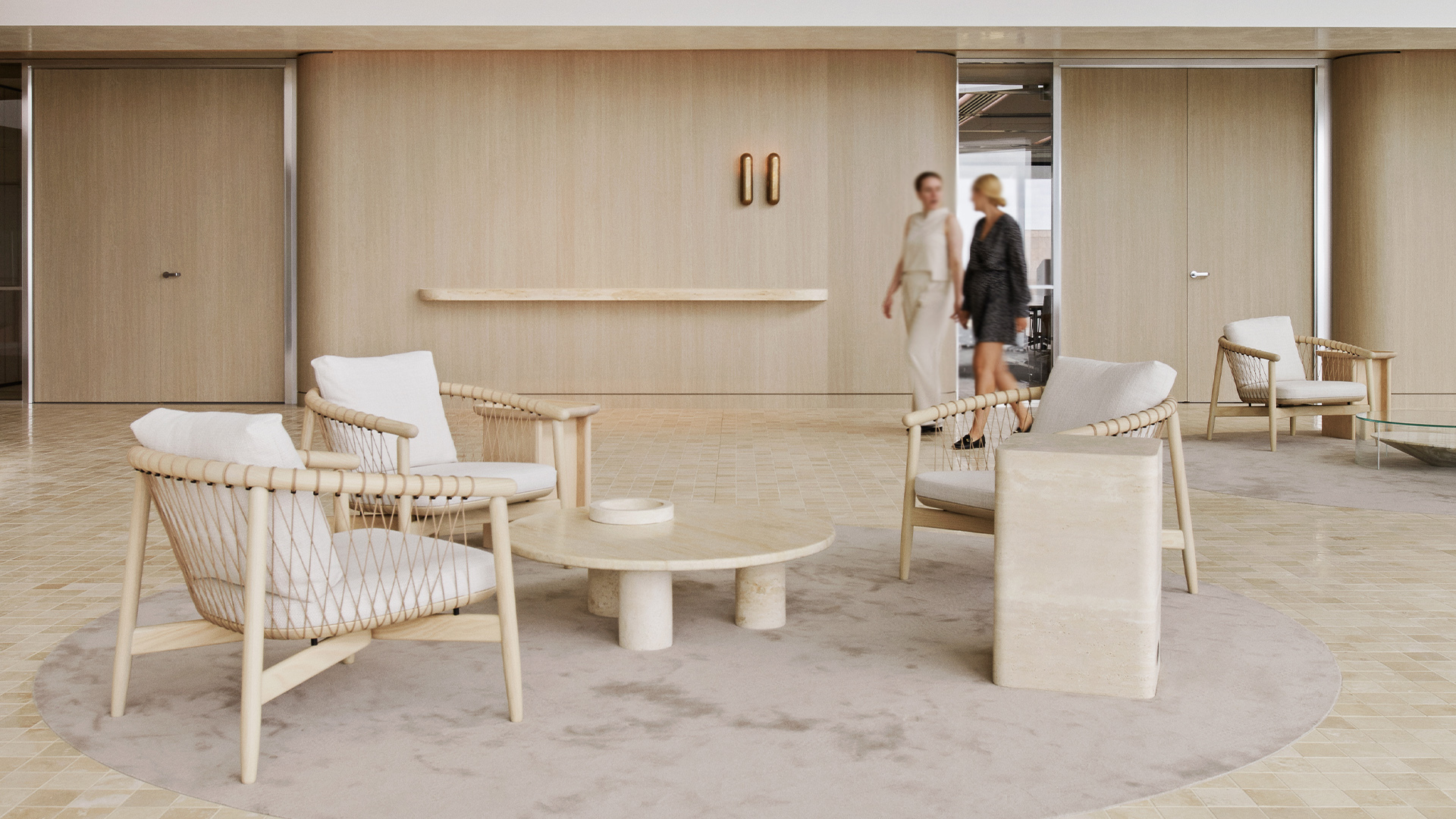 Crosshatch Lounge Chair, White Ash, Stone, Lifestyle