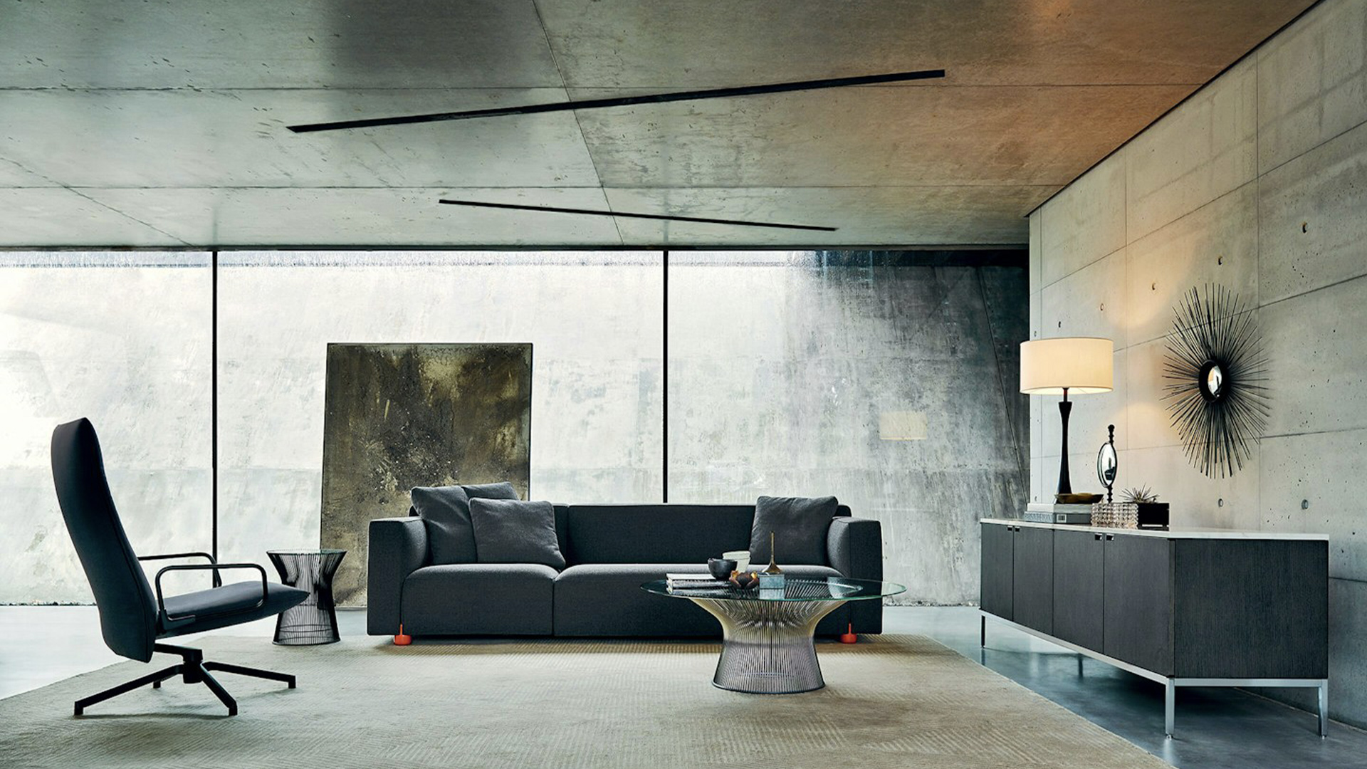 The cantilevered seat, which features a unique upholstery substructure for greater flexibility, appears to float in the air, giving the chair a refined silhouette and an essential, timeless appeal.