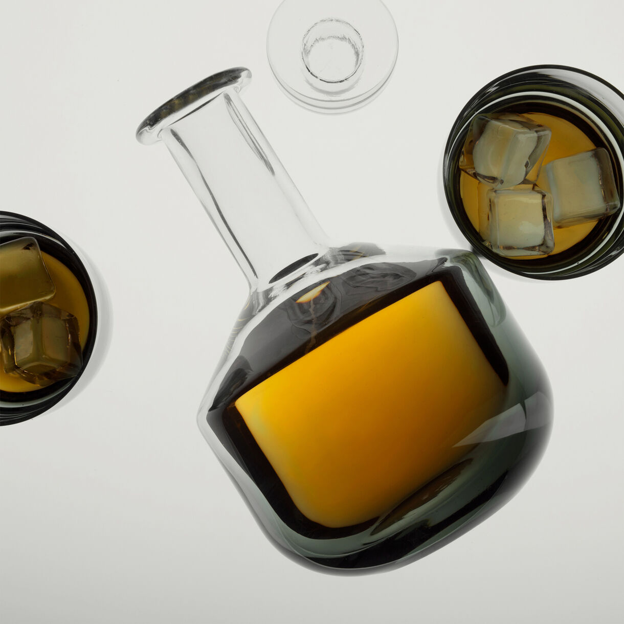 A Tank Whiskey Decanter for your best Scotch or Bourbon, presented in gift-worthy packaging. Mouth-blown and ornamented with hand-painted copper detailing, it forms part of a collection alongside our range of Tom Dixon Tank glassware and tableware.