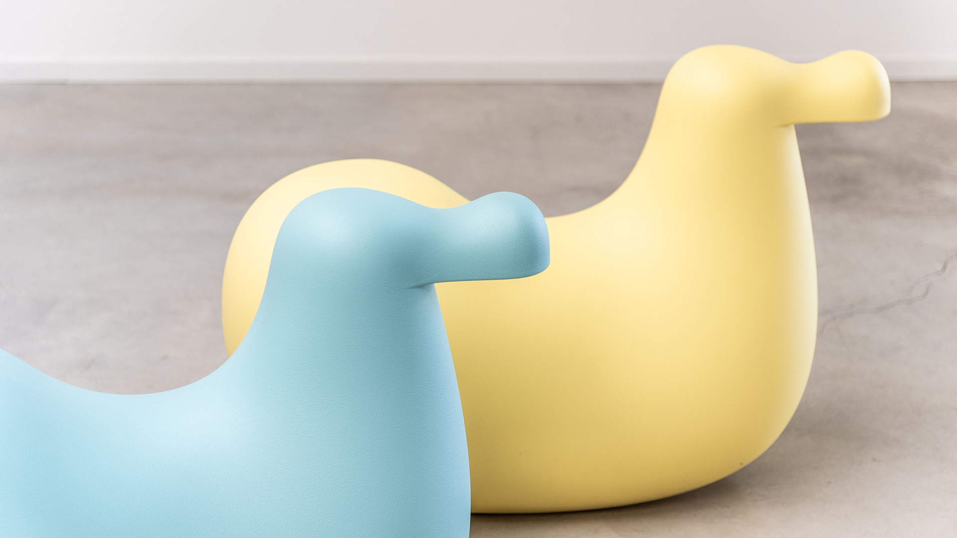 Dodo is a rocking bird for children created by the Finnish designer Oiva Toikka, famed worldwide for his collection of glass birds designed for Iittala. It's round shape welcomes children to sit on its back and gently rock while imagining this bird is flying them through fantastic worlds.