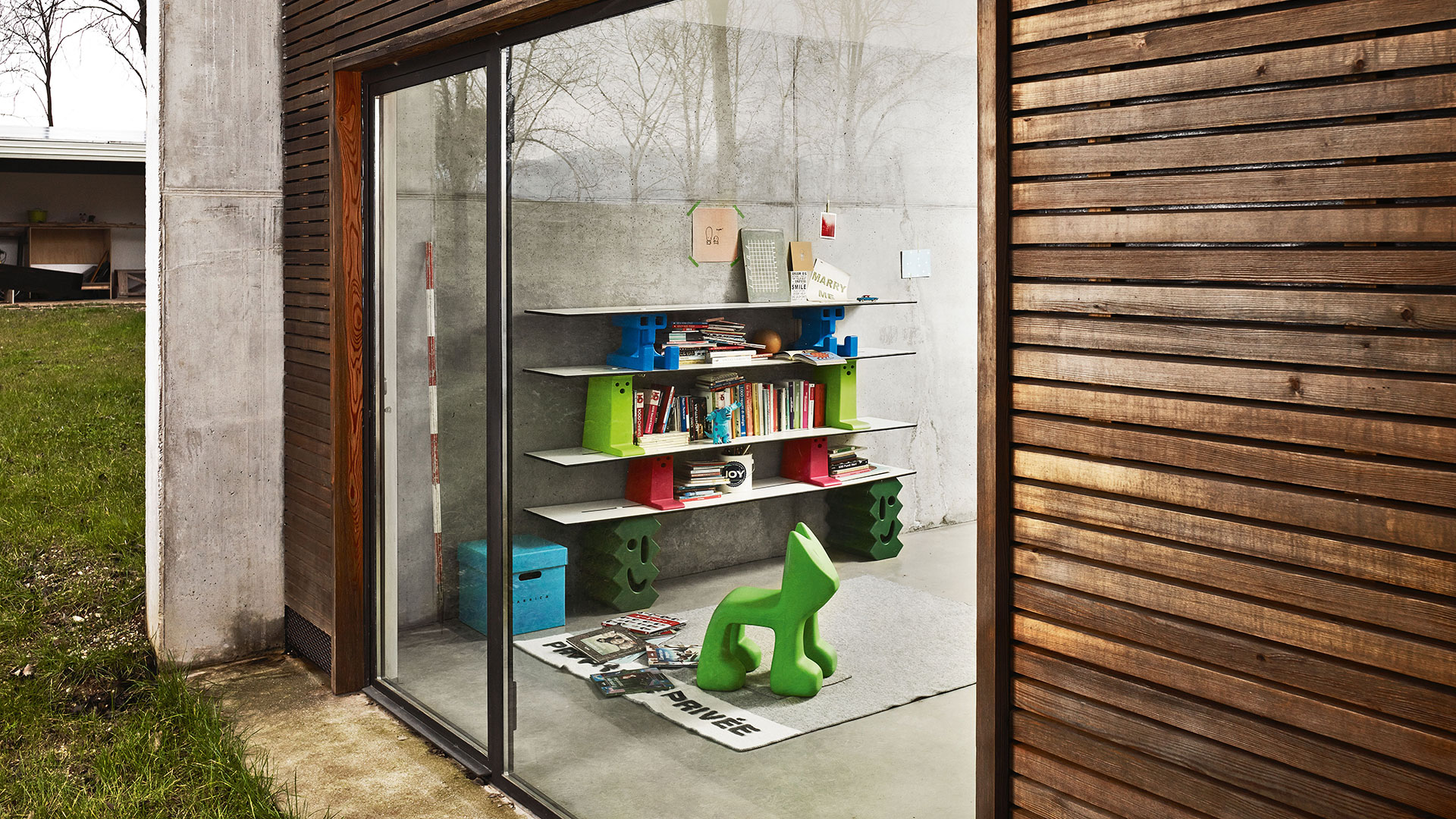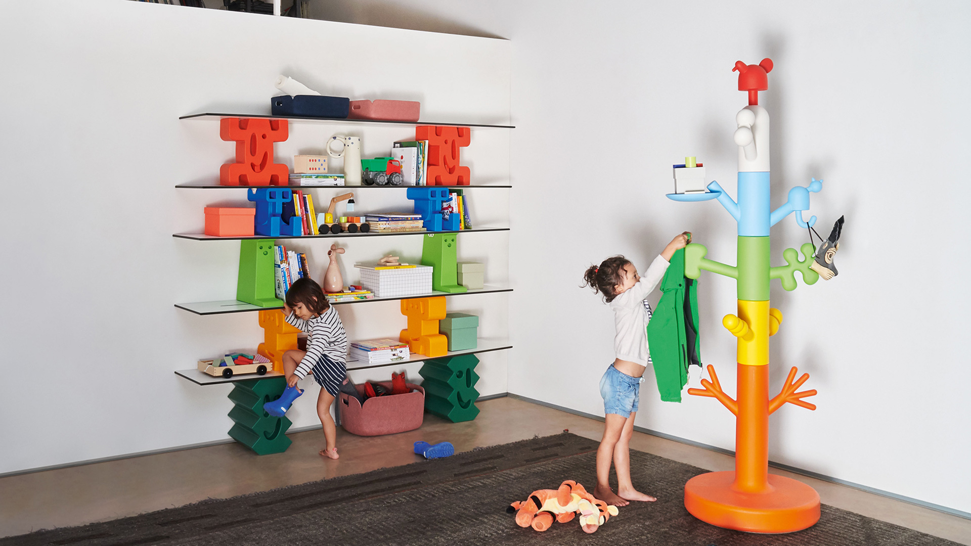 Materials: shelf supports in rotational-moulded polyethylene. Shelves in HPL white with black edge.