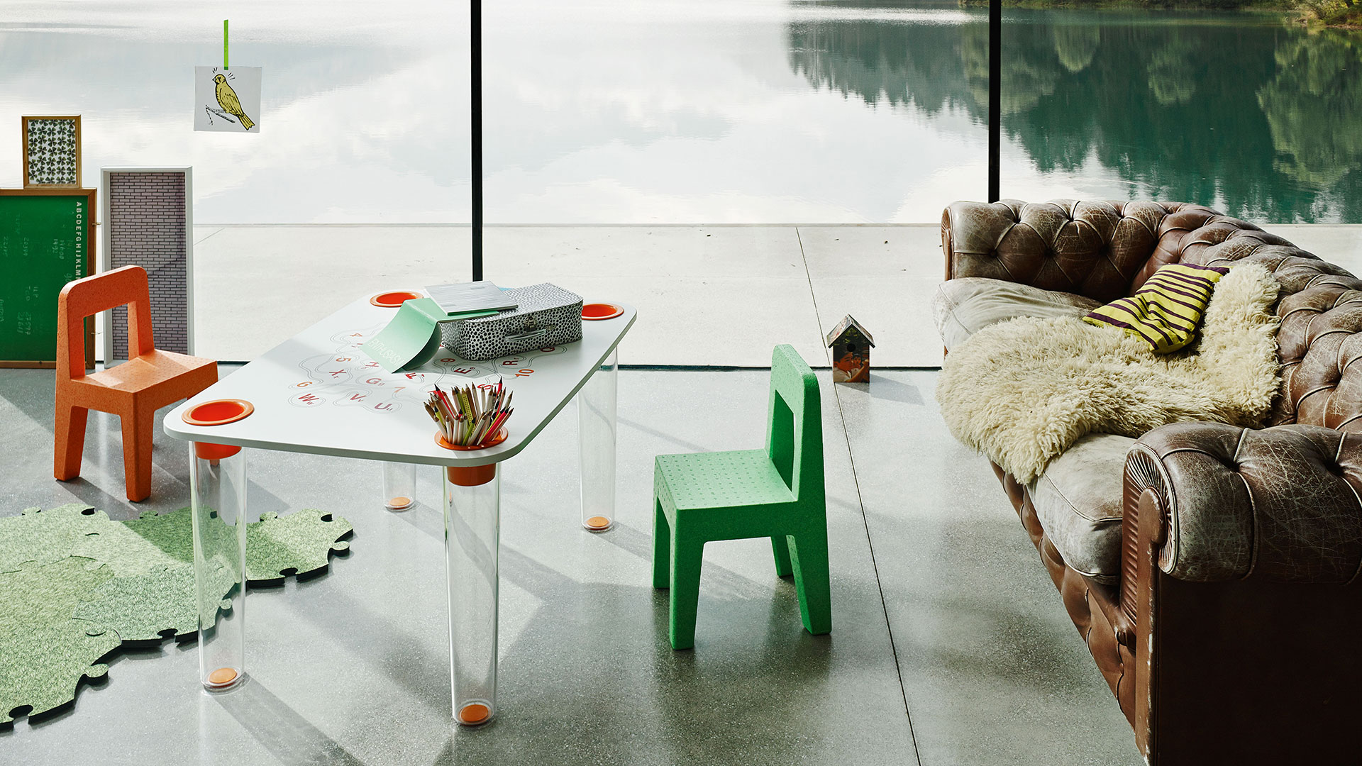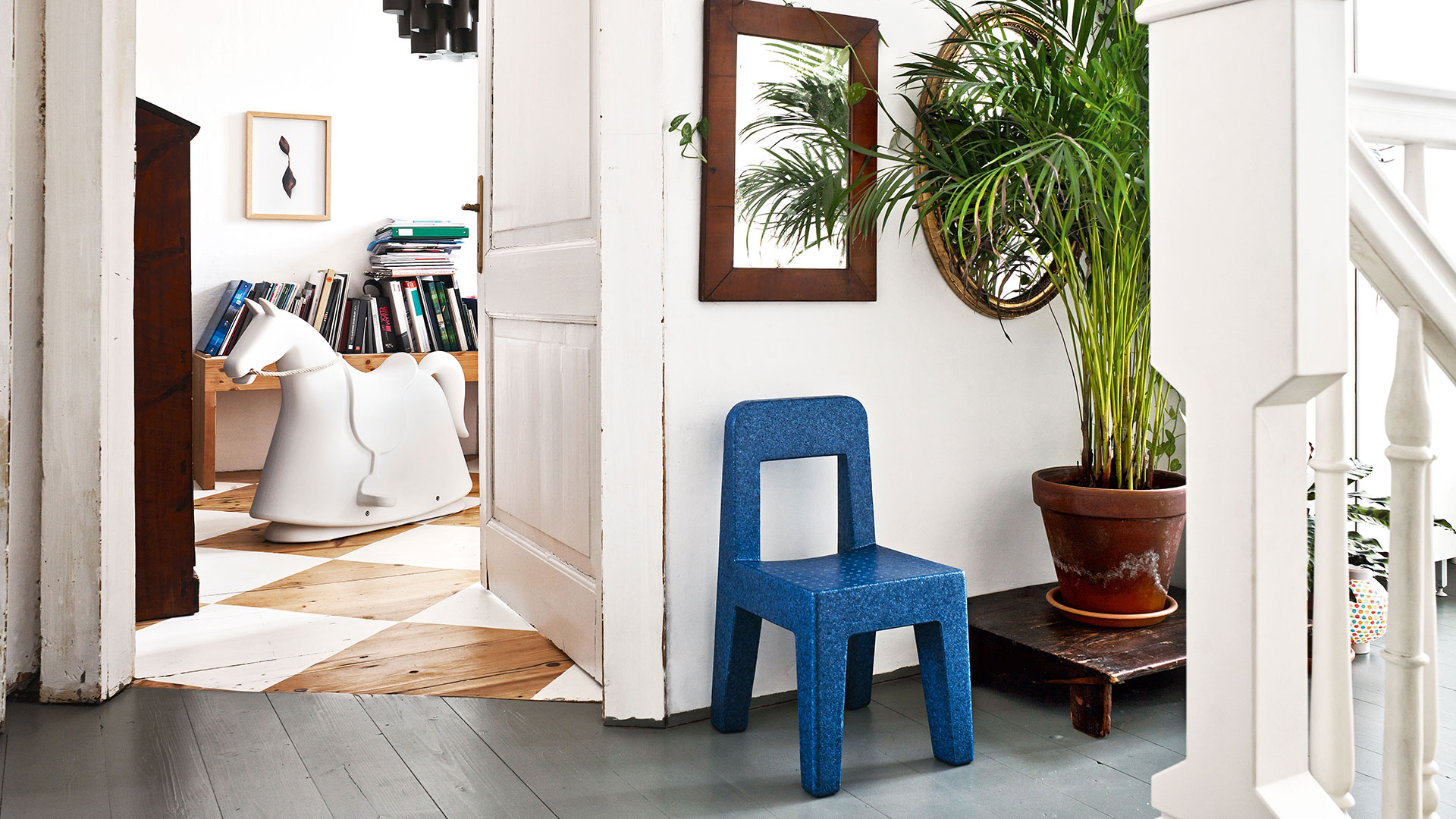 Pop, a children’s chair with iconic shapes designed by Enzo Mari, is the first product in the Me Too collection on which production started in 2004.