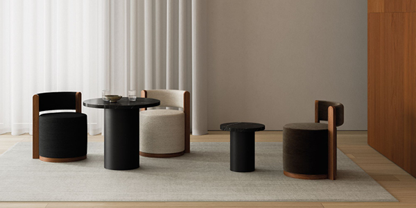 e15 will exclusively unveil its new releases as part of curated living and dining scenes realised in collaboration with the premium kitchen brand Valcucine, together with Rakumba lighting and CC Tapis.