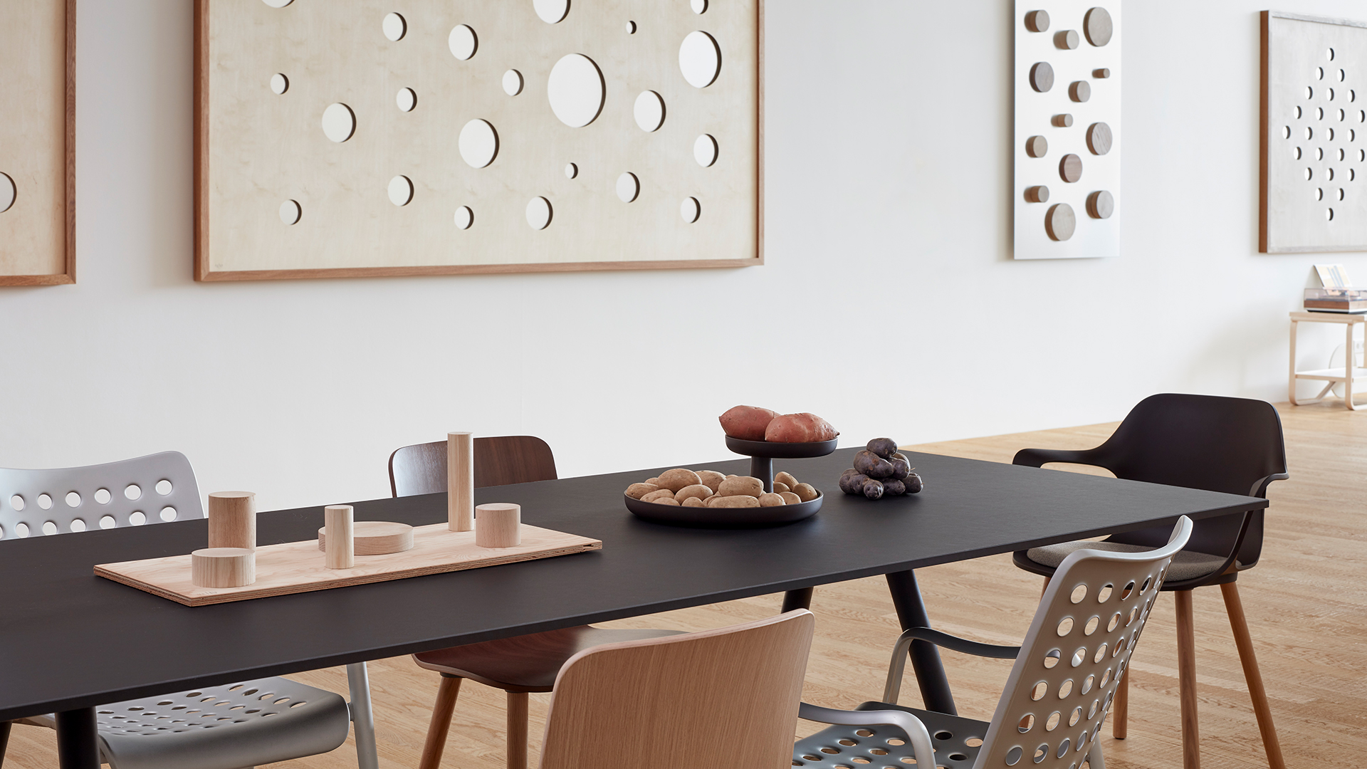 With his design for Rotary Tray, Jasper Morrison has given the classic tiered etagere a new contemporary look. Thanks to its understated shape and colouring, Rotary Tray naturally complements all types of interior styles and can be used for a variety of different functions. Whether in the living room, in a bathroom or entryway, at the office or in a child's room: the Rotary Tray offers a decorative way to tidy up any space.