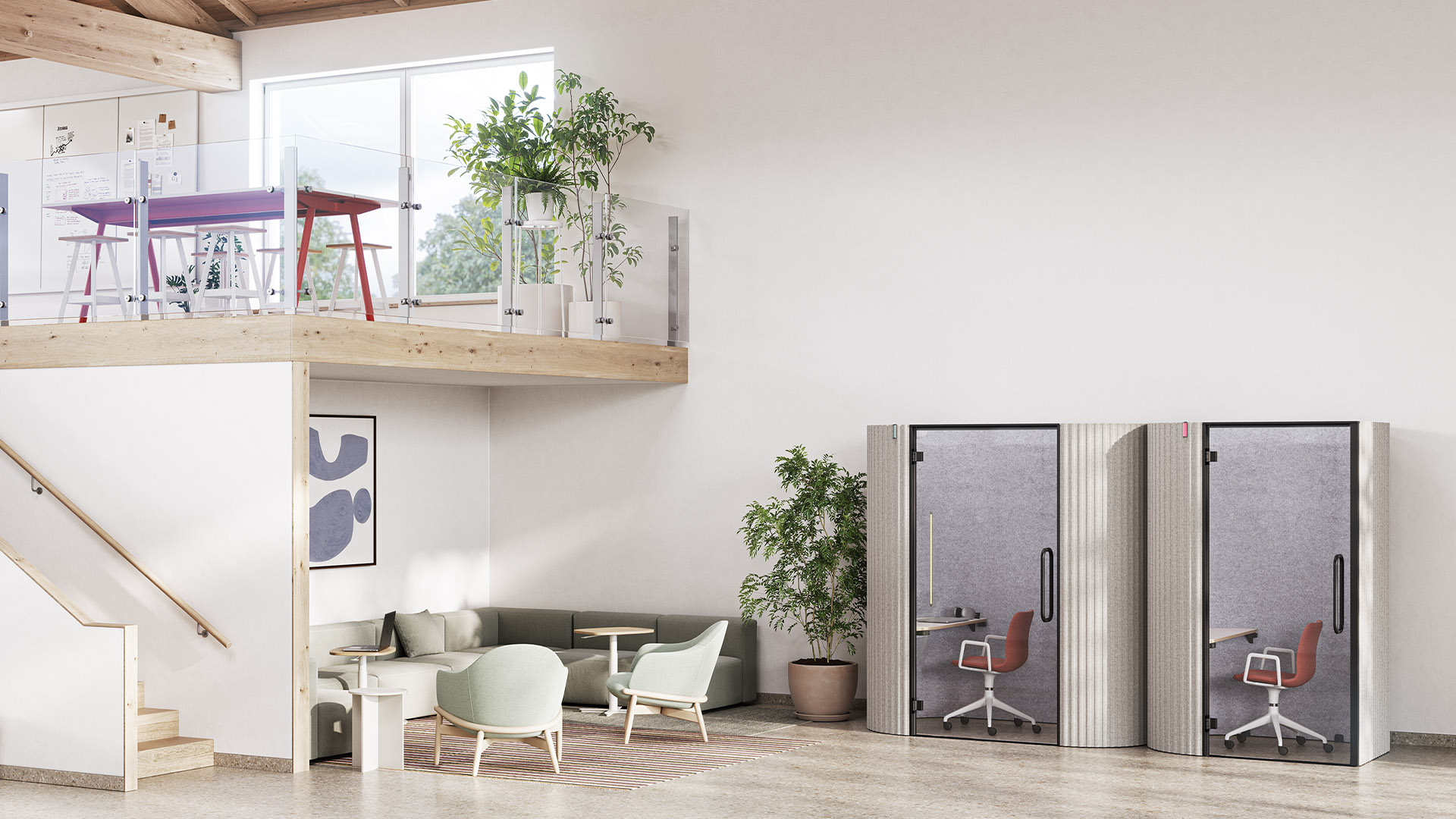 Bay Work Pod Pro builds on the original with a larger, barrier-free form that allows wheelchair users to maneuver comfortably. Like the standard model, it features Class‑leading acoustic engineering via its corrugated fabric shell and rounded architecture—supporting both concentration and privacy.