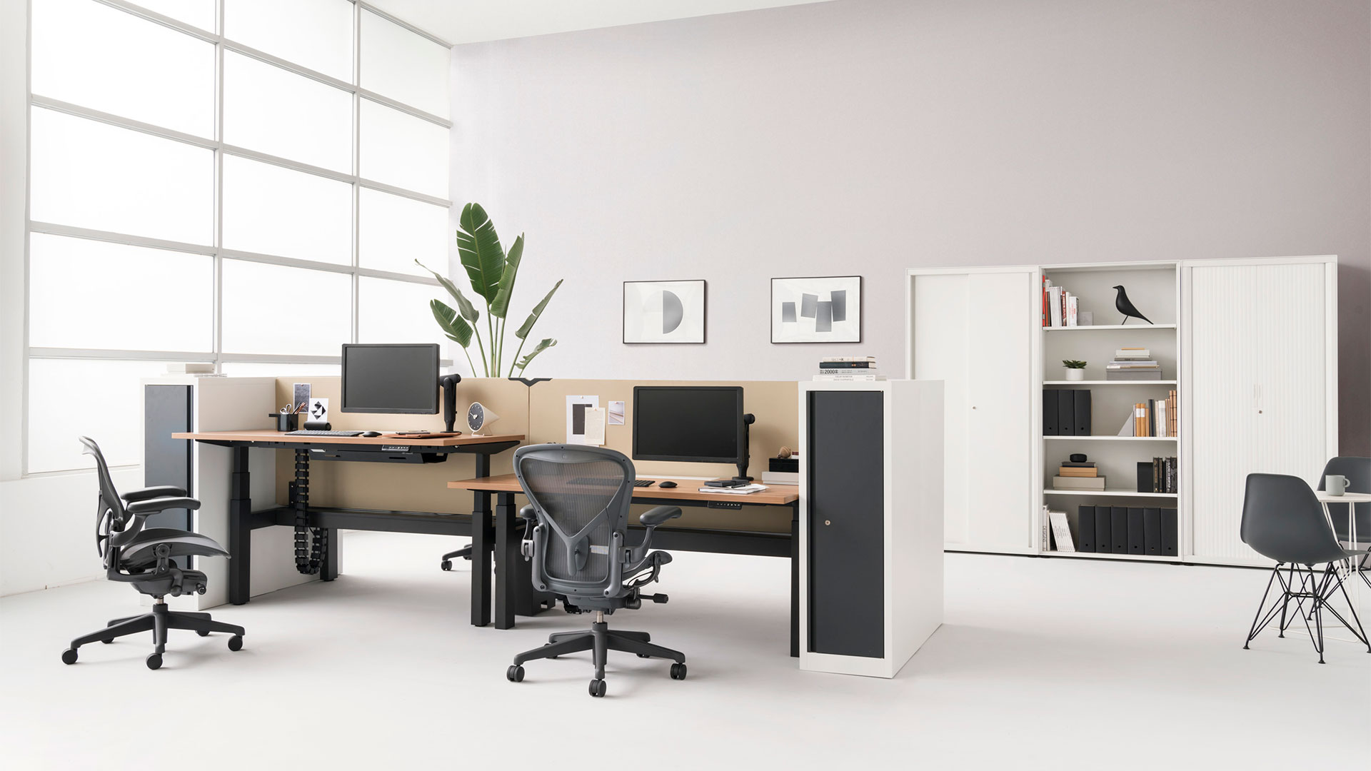 The Ratio height-adjustable desk enables a smooth transition between sitting and standing. Users can vary their posture as they need to find the right balance between sitting and standing throughout the day. Ratio can be specified as single desks or in unlimited clusters, working with our other desking solutions to complete any floor plate.