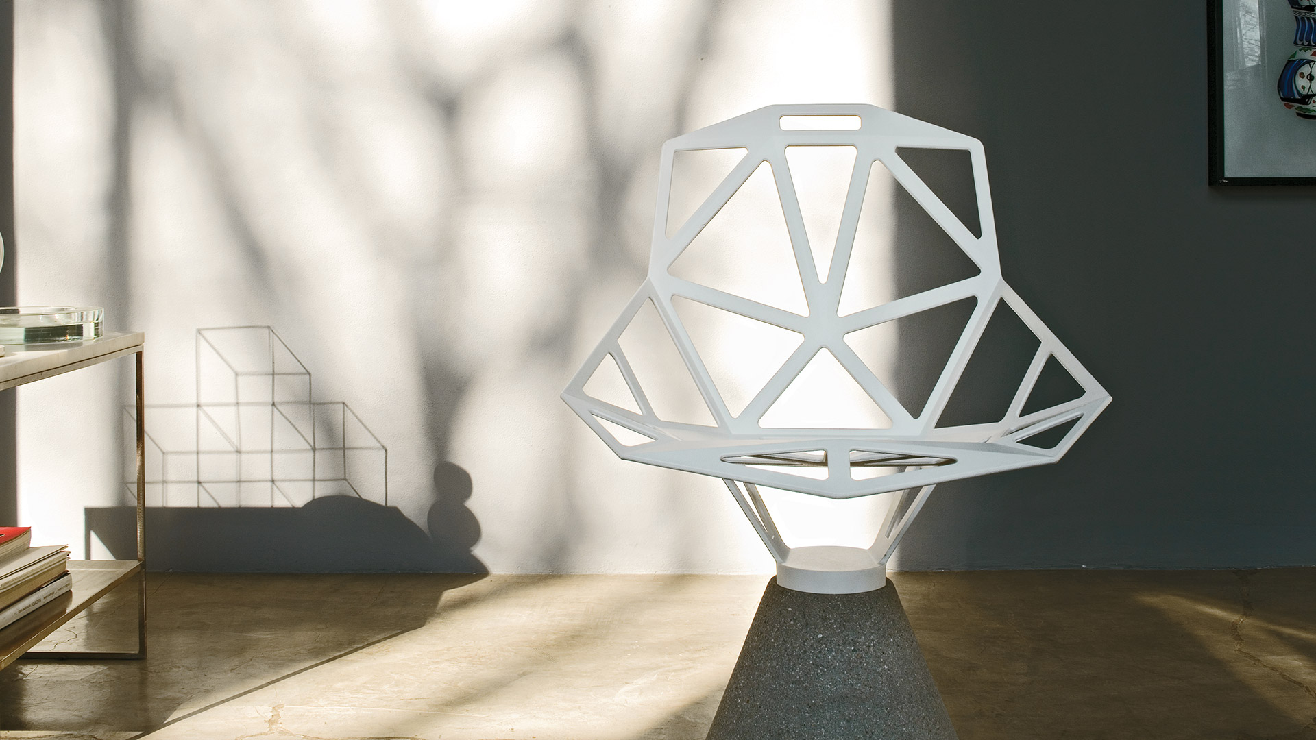 The Chair_One Chairs are achieved by exploiting the potential of die-casting which is a precise technology allowing complex three-dimensional shapes to be obtained from metal (in this case aluminium). The result is therefore a chair in which the spaces prevail over the solid parts to characterise its aesthetic quality. Chair_One has now become a classic of the future.