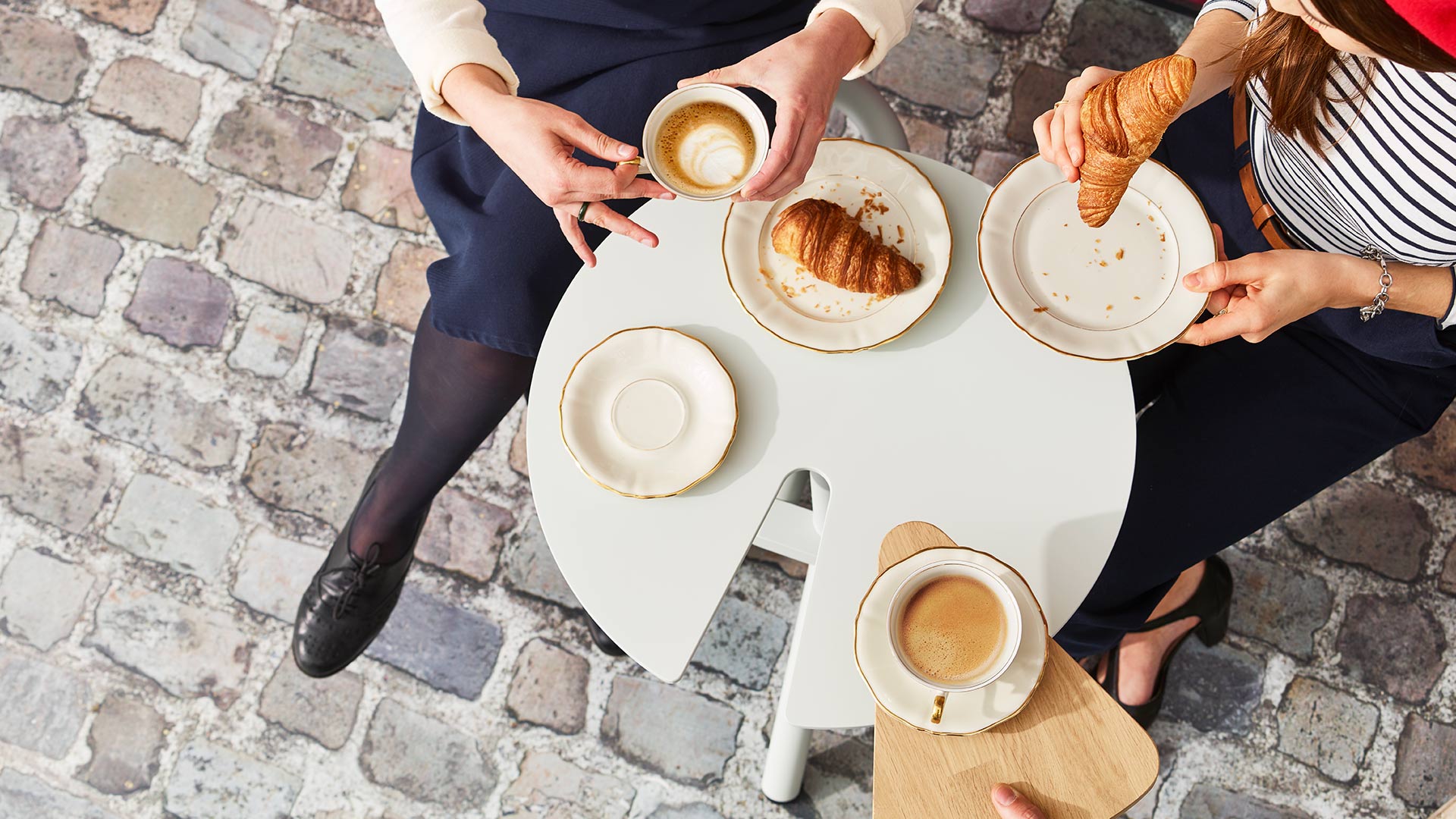 When you see the Bistroo you will immediately realise what the double ‘oo’ is all about. The rounded backrests provide support as you sit side by side, watching the world go by. Enjoy a continental breakfast or delicious hors d’oeuvres at the table. The specially designed hole in the table is the ideal place for the garçon to leave a tray of herbs and condiments. No need to worry about your fork falling through the slats of rickety tables. Three legs, two chairs and one tabletop are the basis of this innovative concept. The Bistroo remains perfectly stable on an outdoor terrace thanks to its three cleverly-positioned legs. The fact that this ingenious new concept is quick to stack and lock away is another great benefit for any restaurant owner.