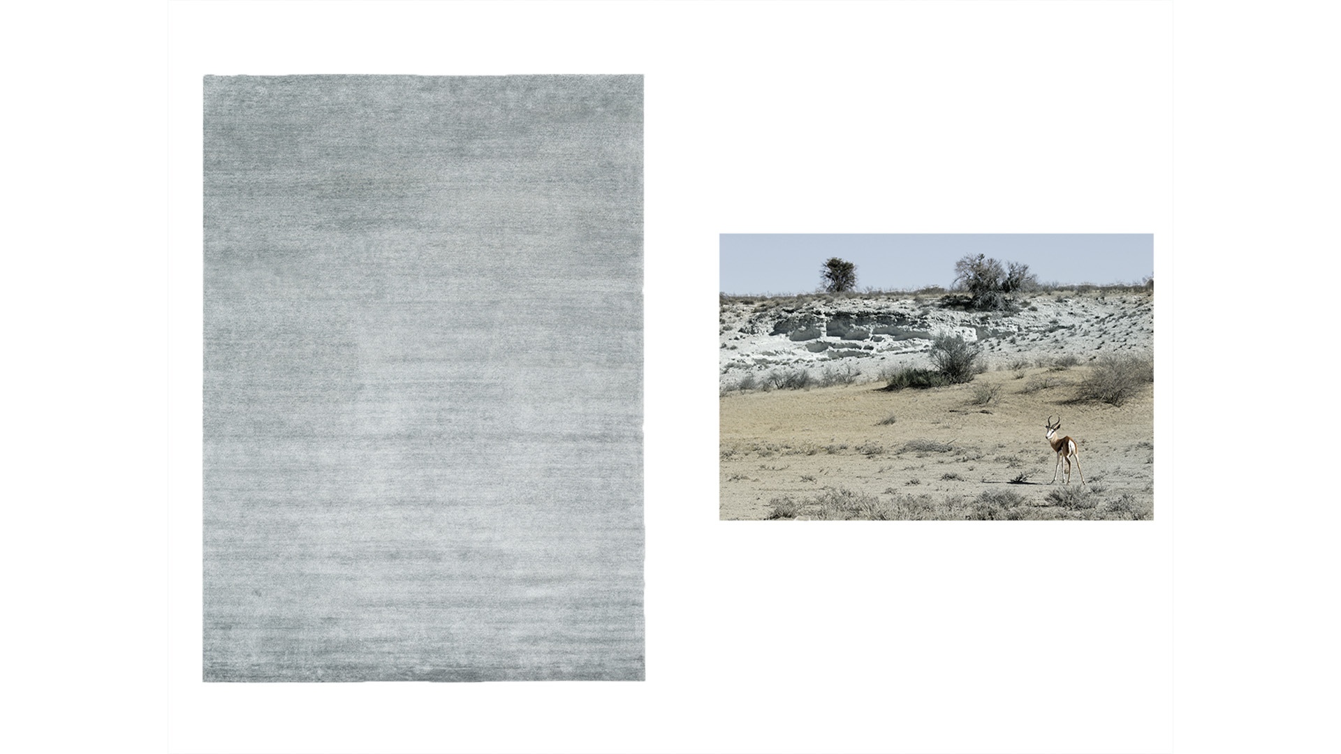 The Ewe people say, "He who looks to heaven will never discover anything on earth.” The sedimentary limestone, called Chooka in the Suahili language, found in the deep layers of the African continent inspired the colours of the carpet.