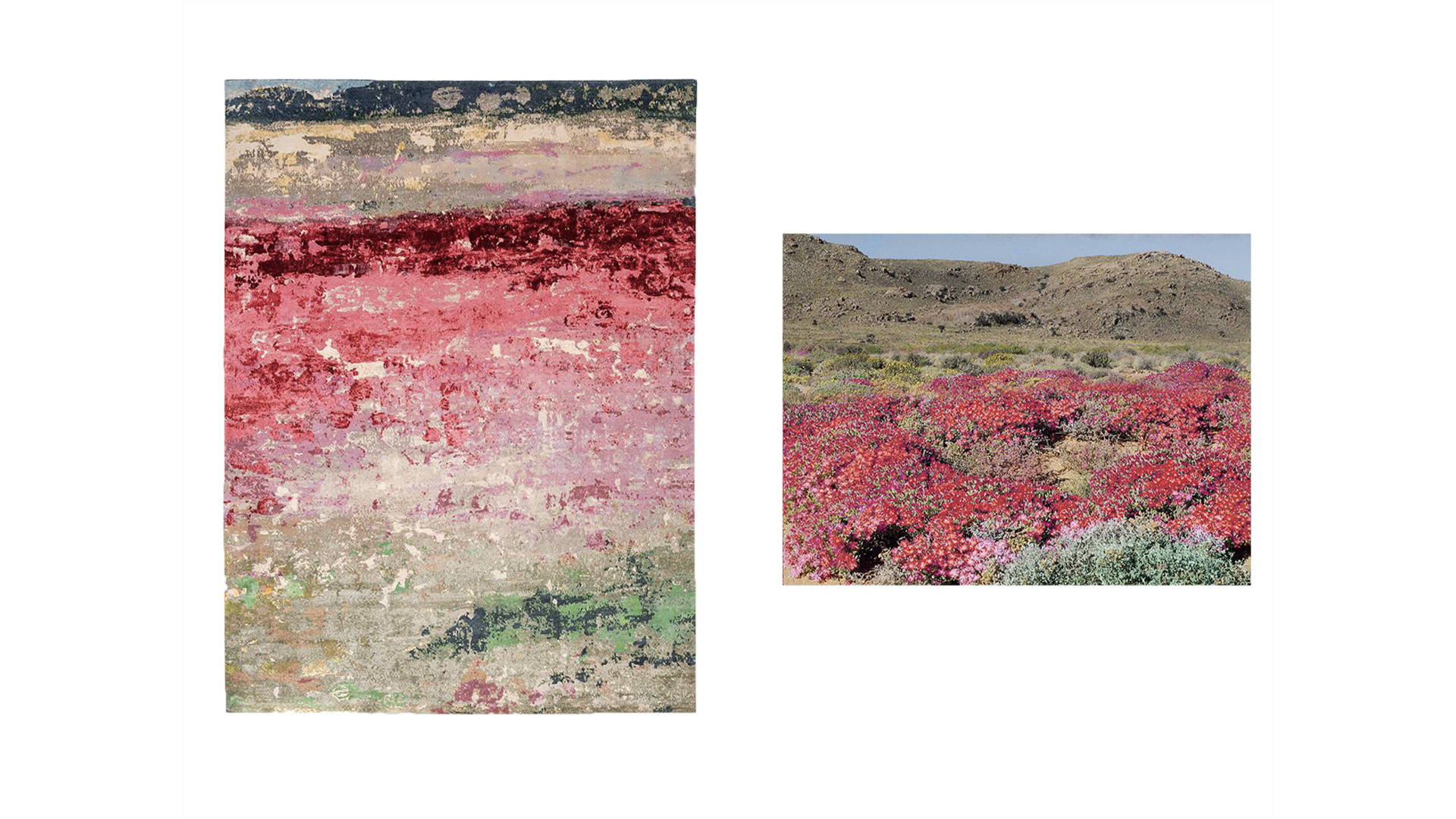 There is an African proverb that says, "What you grow in the field of your life is more important than the size of the field”. The design of Imbali - Zulu for flower - captures the intense colors of the wildflower bloom that once a year transforms the desert of Namaqualand.