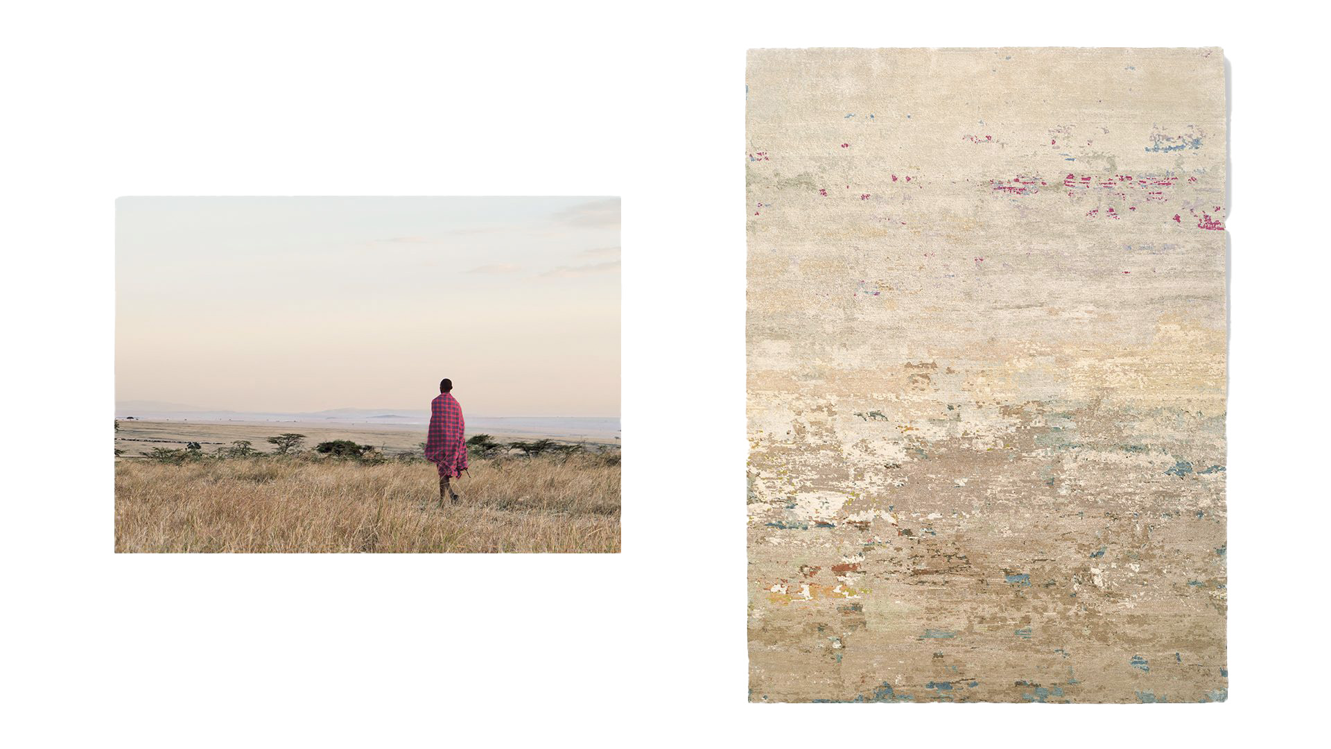 Kiwara, Swahili for Savanna: “When the sun is shining, let it warm you.” A sea of light, natural tones in interplay with intense colours. The horizon opens up, the sky turns a slight shade of purple, and the vastness of the steppe seems endless.