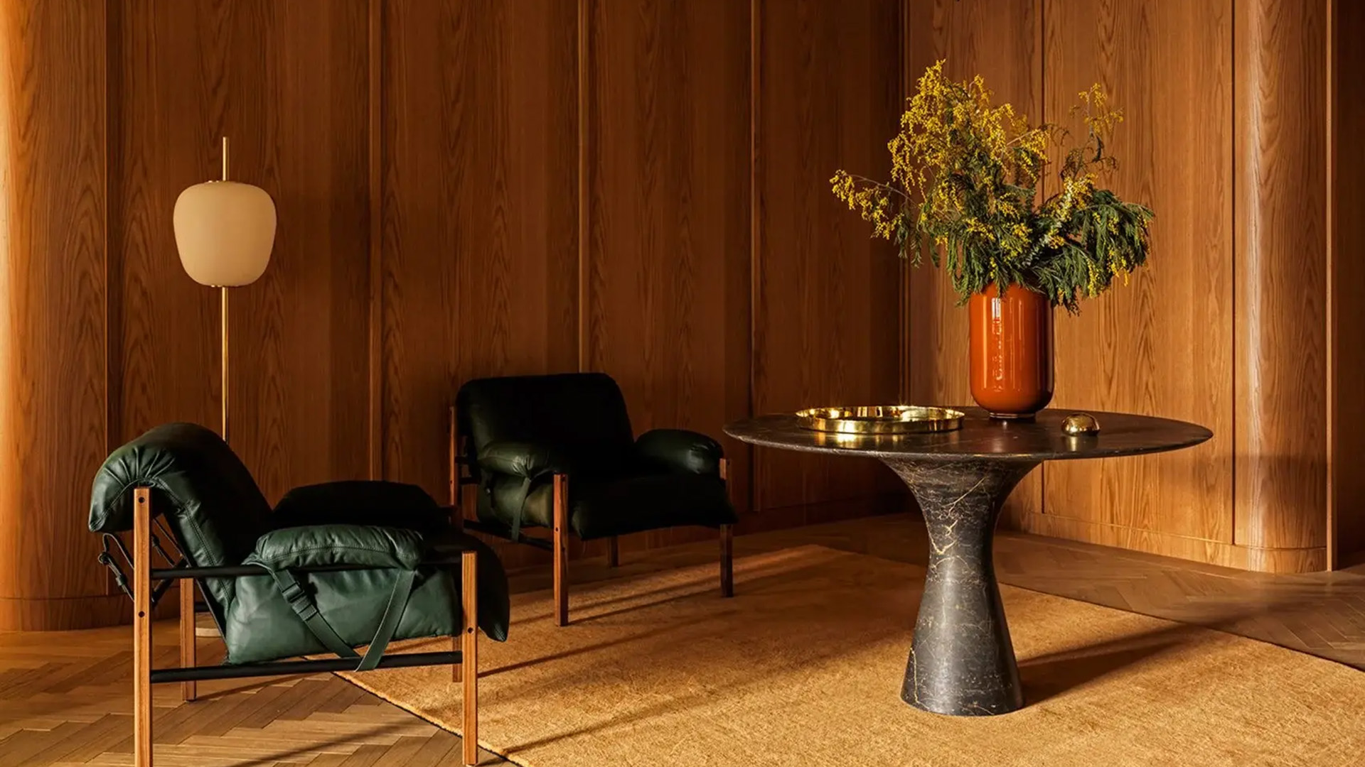BassamFellows pushes the structural boundaries in its designs while elevating design details to rarefied moments that quietly radiate true craftsmanship. The Sling Chair exemplifies this balance by pairing exceptionally soft and noble leather cushioning with a lithesome four-post wood and steel structure. Plated steel tubes form a structural cage that supports a sling hammock of stitched leather straps anchored at the chair’s top rail and seat deck.