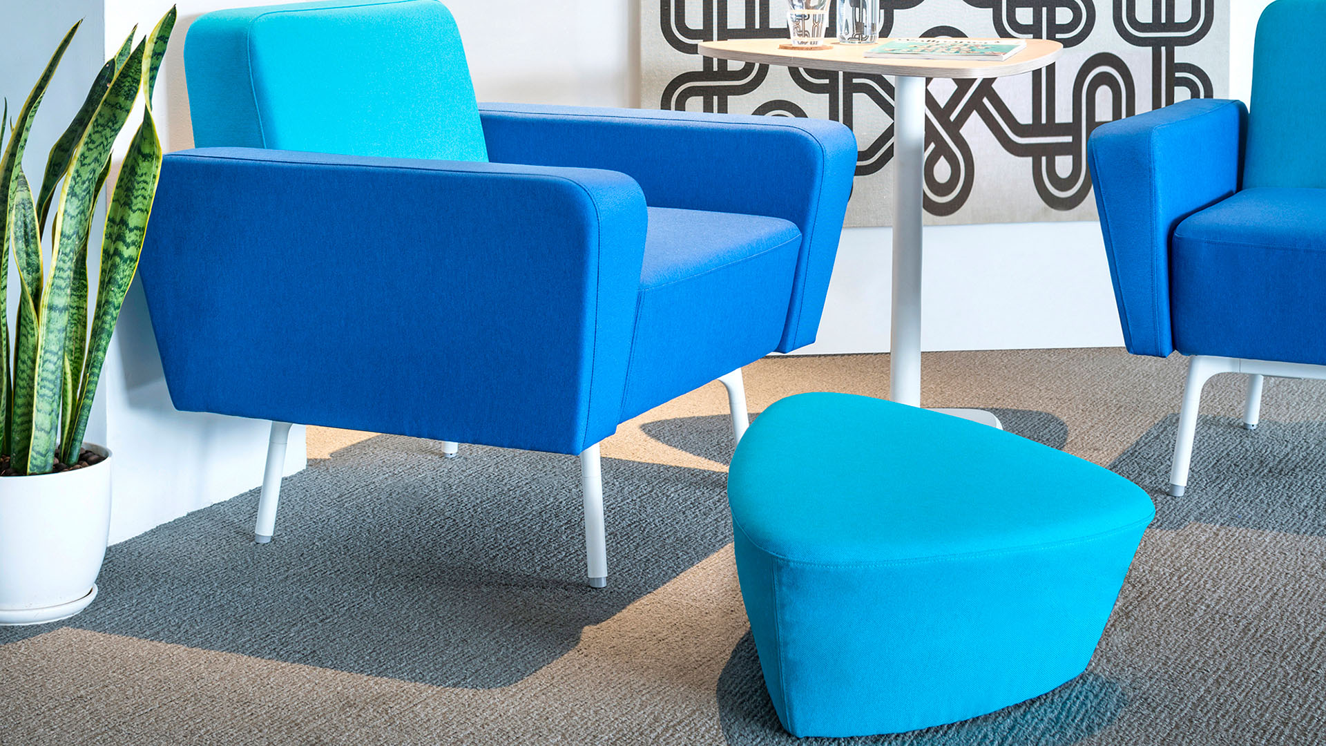Start with soft seating and built-in surface elements, which connect to Sabha’s twin-beam, four-leg base. To build a larger cluster for a lobby or public area, add recess legs in the centre for more support. In team areas, combine Sabha’s high backrests with shareable, standing surfaces, or use the backrest to create a sense of enclosure. Expand Sabha’s versatility with its accompanying elements: ottomans, coffee tables, stools and on- and off-module armrests.