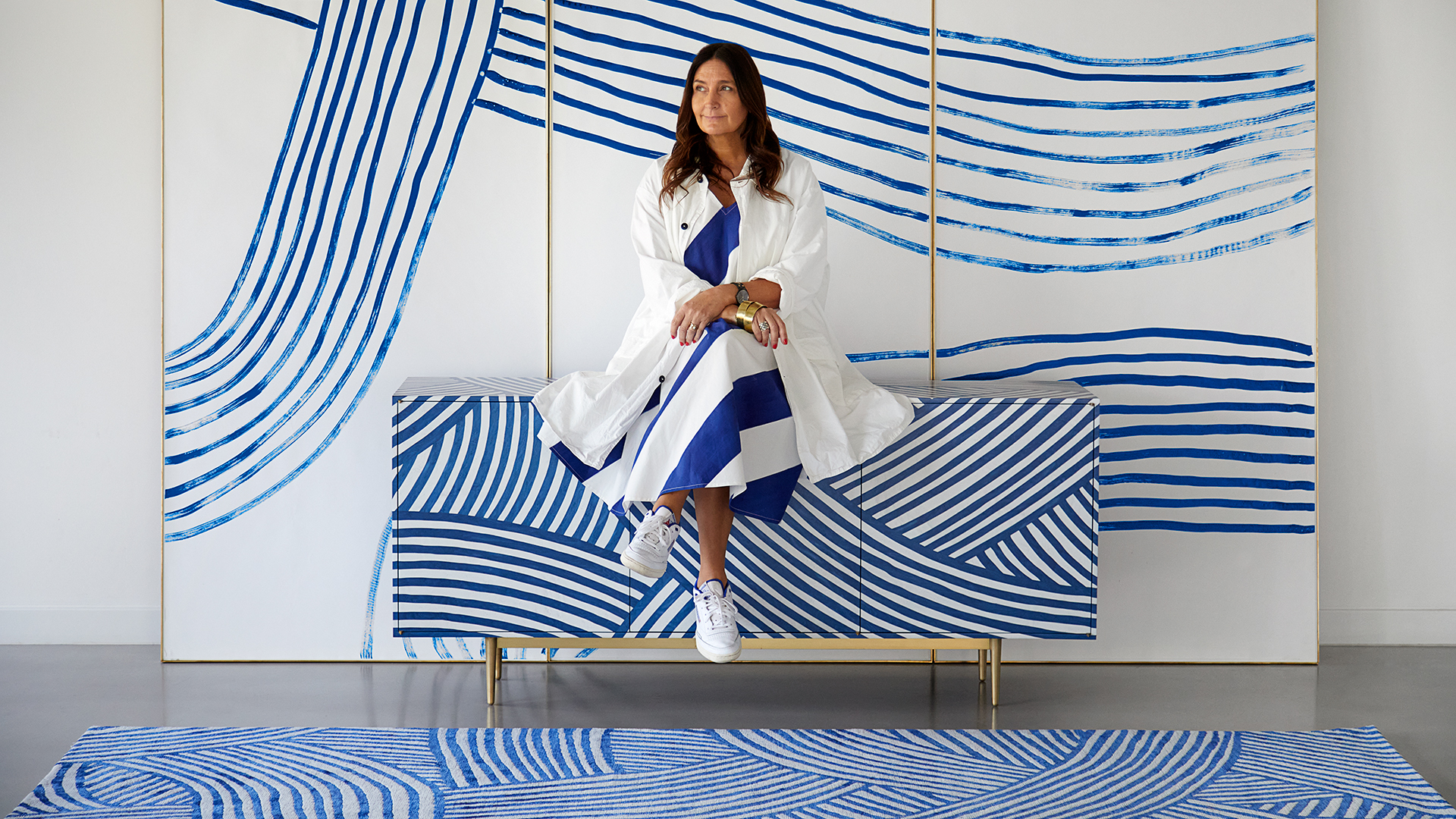 Inky Dhow is an evolution of the Dhow pattern, inspired by the billowing sails of traditional Omani sailing boats, translated into a large-scale artwork by hand using sweeping strokes of a calligraphy brush and ink. This lends a painterly depth to Inky Dhow’s more organic, flowing lines and its intense ultramarine hue.