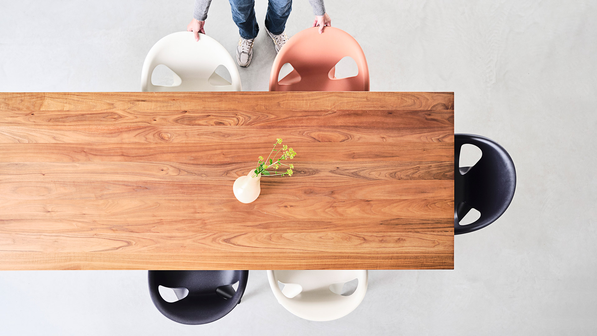 The chair weighs just 2.7 kilograms, making it at least one and a half kilos lighter than average plastic chairs. This fact is a testament to the use of less material and causes less energy consumption during production. The key to this saving lies in the ingenious shell shape of the chair. Its bulbous geometry is not only structurally strong, it also makes the chair extraordinarily comfortable and visually appealing.